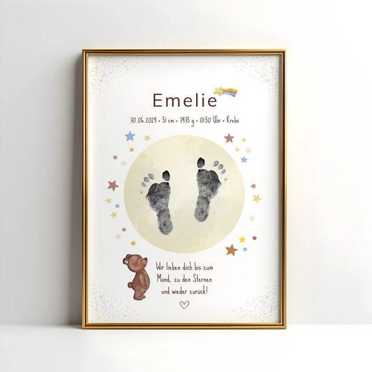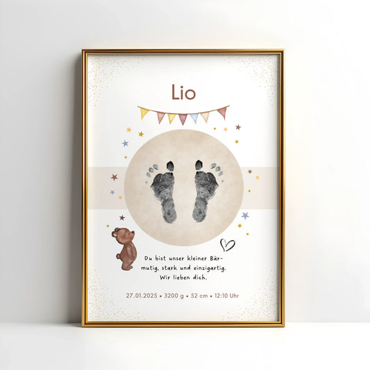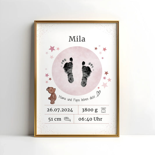 Personalisierte Geburtsposter mit Platz für Hand- oder Fußabdrücke – hochwertig, individuell & perfekt als Geschenk oder Erinnerung zur Geburt.