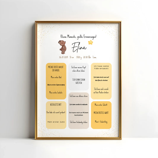 Entdecke unsere personalisierten Meilensteinposter mit den schönsten Momenten deines Kindes.